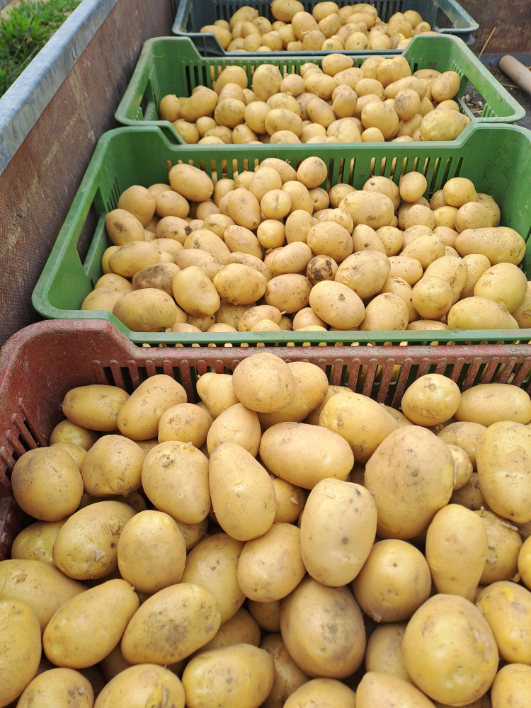 Jarní práce jsou na farmě v plném proudu. Ani letos jsme neopomněli zasadit brambory, tentokrát jsme si pro Vás připravili velmi kvalitní salátové odrůdy Anuschka a Antonia, za varný typ B jsme letos zvolili osvědčenou odrůdu Impalu.